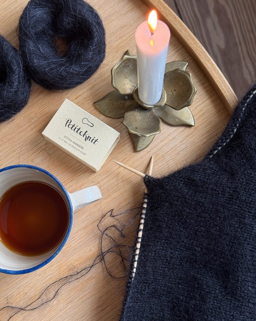 Material: Brushed Lace von Mohair by Canard (25 g = 210 m) oder Silk Mohair von Isager Yarn (25 g = 212 m) oder Primo Tynn Silk Mohair von Sandnes Garn (25 g = 212 m) oder Tilia von Filcolana (25 g = 210 m) (zweifädig)