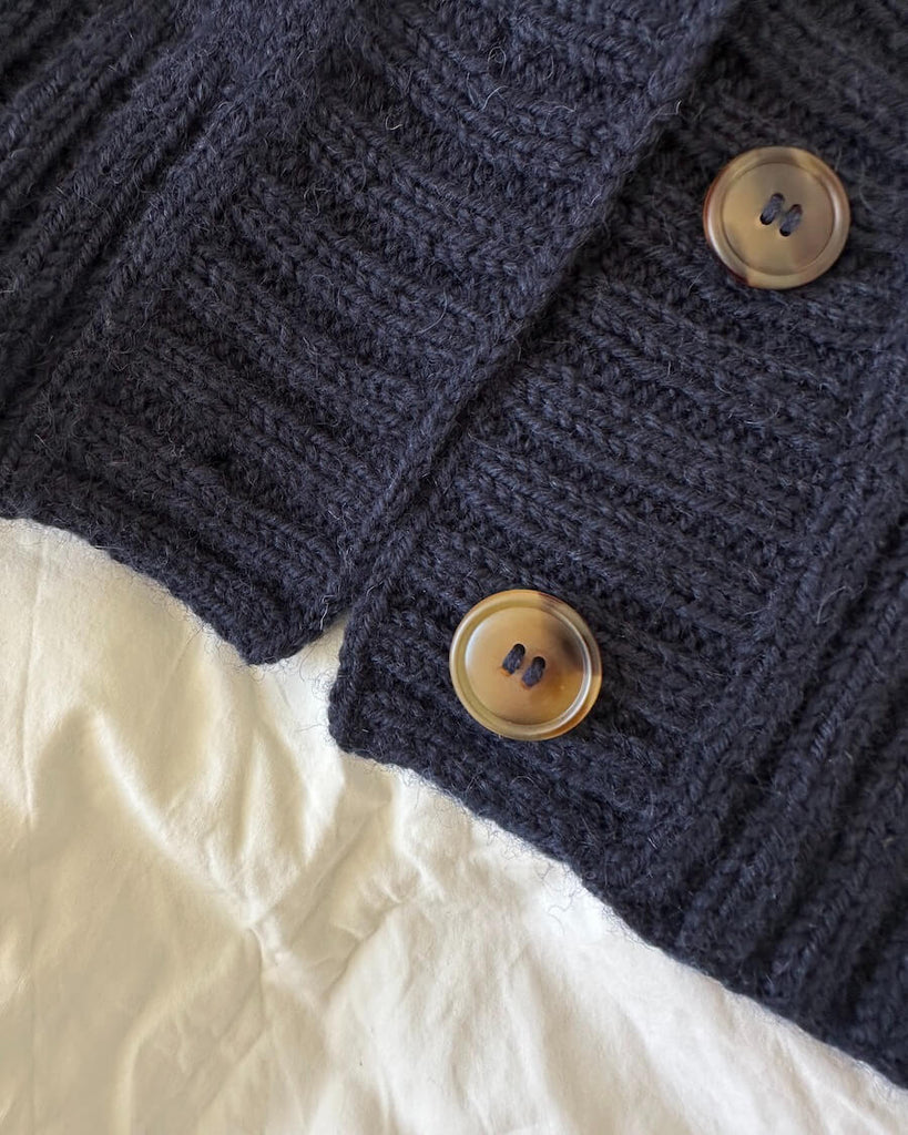 Hornimitatknöpfe aus Galalith im Päckchen à 4 Stk., die zum Agnete Cardigan, Eva Cardigan, Balloncardigan und Champagne Cardigan passen