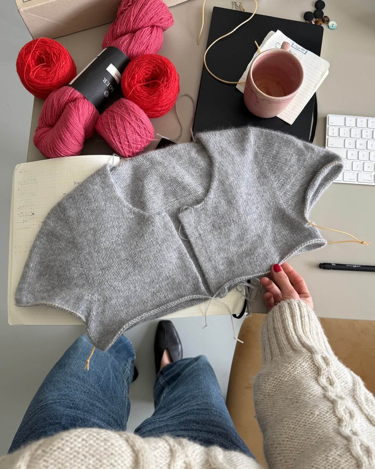 If you, for example, have broad shoulders but a small bust circumference, you can choose to go up a size. Use the size you would normally buy in a top as a guide for choosing which size to knit. You can also measure a well-fitting blouse in your wardrobe and choose the size in the pattern that is closest.