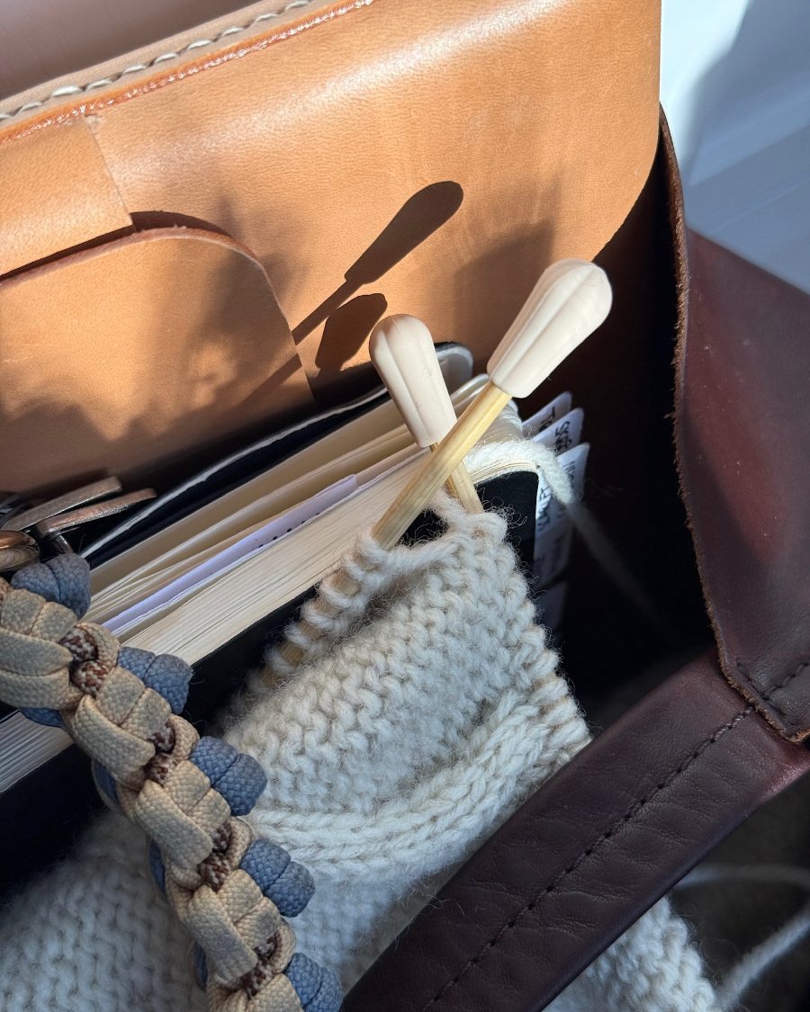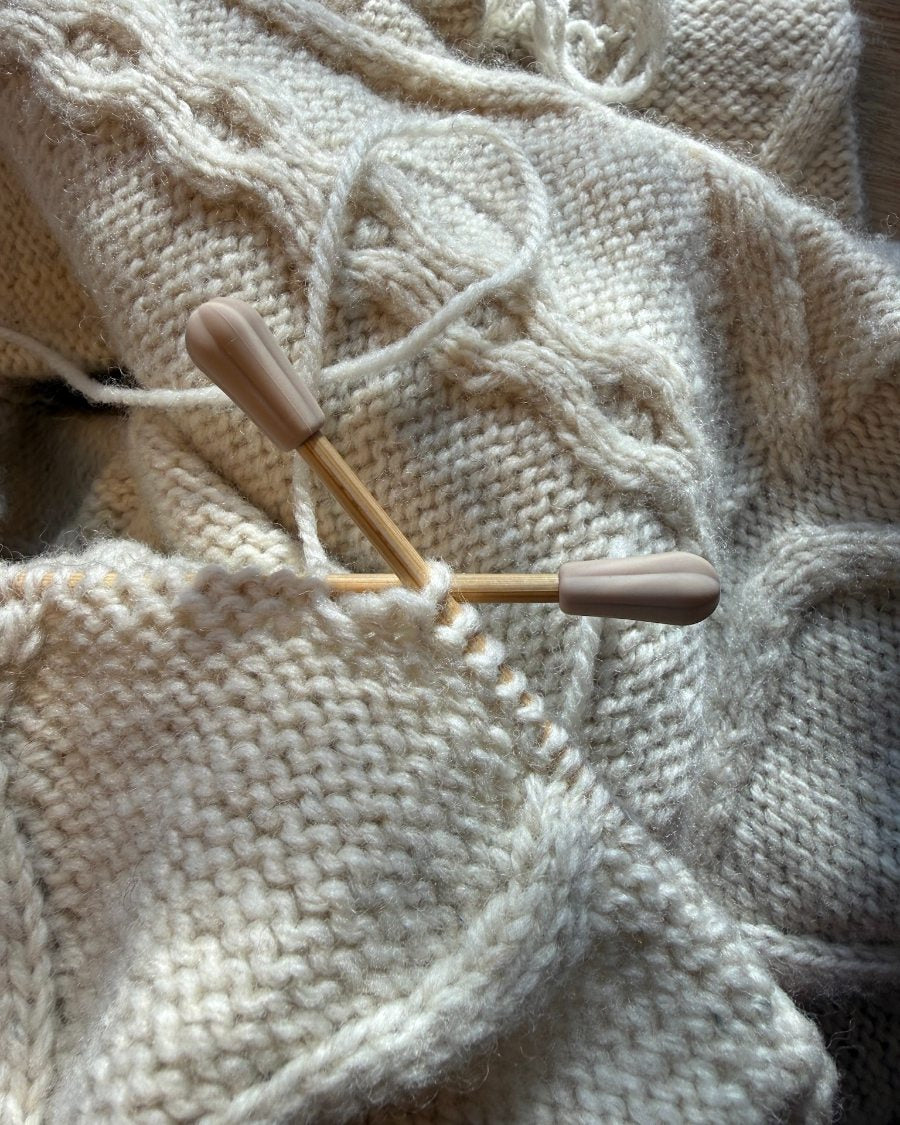 Point protectors to make sure the stitches are secure on your knitting needles, even when you bring your knitting with you.