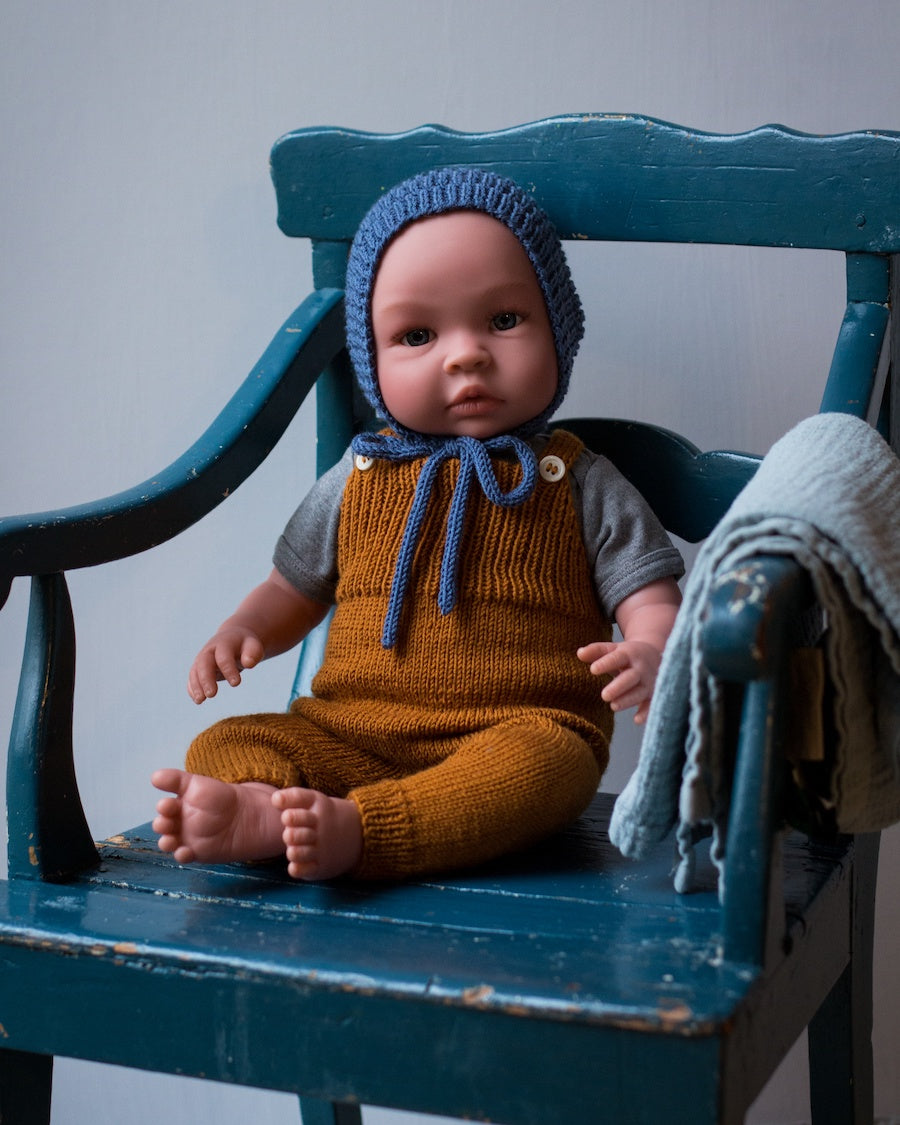 Tanken med hæftet Dukkestrik er at inspirere til små hyggestunder og restegarnsprojekter. Alle opskrifter er miniudgaver af allerede eksisterende opskrifter på børnetøj fra PetiteKnit, så yndlingsdukken og junior kan matche. Jeg har angivet, hvor mange gram garn jeg har brugt til hver enkelt stykke dukketøj – på den måde kan du nemt finde ud af, om resterne fra garnlageret rækker. Faktisk skal der bruges mindre end et nøgle garn til 10 ud af de 11 opskrifter i hæftet.
