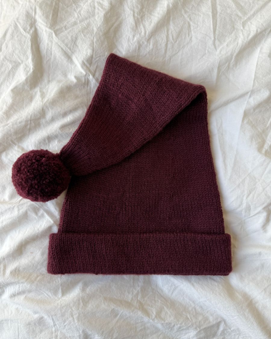 Den bordeauxröda Oslo Mössa – Christmas Edition är stickad i Double Sunday från Sandnes Garn i färgen Dyp burgunder [4372].